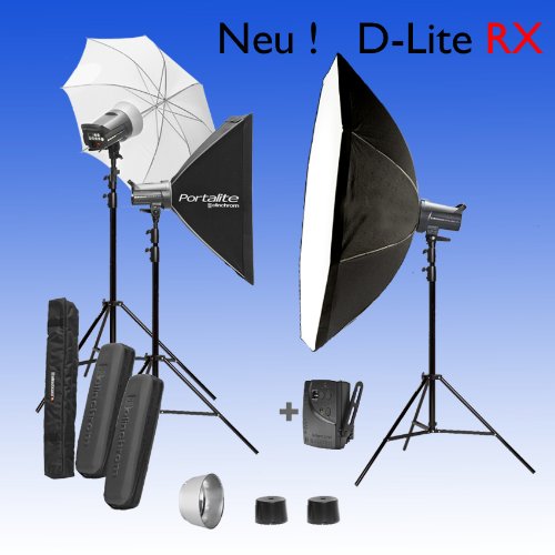 2 JAHRE WERKSGARANTIE - BITTE BEACHTEN: Deutsche Garantieabwicklung erhalten Sie nur bei Artikeln, die Sie bei Elinchrom Premium Bezugspartnern in Deutschland gekauft haben - Eine Liste dieser Partner finden Sie auf der Elinchrom Webseite.3 Blitzköpfe D-Lite RX 4/4/2 mit 400/400/200WS / Eingebaute SKYPORT RX Receiver mit allen neuen RX-Funk- und Computerfunktionen / 1 SKYPORT SPEED Sender / 1 Helios Octabox 120cm mit Elinchrom Speedring / 1 Elinchrom Portalite Softbox 66 x 66 cm / 1 Elinchrom Transparentschirm weiss 83 cm / 1 Elinchrom Silber-Reflexschirm 83 cm / 2 WW-/Schirm-Reflektoren 16 cm 90° / 2 Tragetaschen für Blitzgeräte / 3 Quick-Lock Stative 88 x 235 cm / 1 Stativtasche für 3 Stative / Plus Birnen, Kabel, KappenEinige Details: Kurze Blitzdauer gegen Unschärfe: 1/900 bzw. 1/1200 sec. / Elektronisch stabilisierte Blitzleistung / Digitales Display: Einfach und genau / Multivoltage : 90V - 260V / 50 - 60 Hz / Pilotlicht : 100W langlebige Kryptonbirne (entspricht 150W) / Pilotlichtsteuerung : proportional/max/min/aus / Blitzröhre : Plug-in, selbstauswechselbar / Schirmhalterungen : Zentral + am Neigegelenk / 5V Synchronspannung z.Schutz Ihrer Kamera / Lüfter, Überhitzungs- + ÜberspannungsschutzD-Lite 4 RX 400 WS / D-Lite 2 RX 200 WS / Integrierte kabellose Skyport RX Funk-Empfänger (NEU) / Auto-Dump: Automatischer Leistungsabbau bei Leistungsreduzierung, kein Abblitzen / EYE-CELL Photozelle mit automatischer oder programmierbarer Vorblitzerkennung / Temperaturgesteuertes Kühlgebläse / Blende 1m, 100 ISO, 1/250 s : 65,3 bzw. 45,3 / Stufenlos einstellbare Blenden : 5 / Feinregelung: Stufenlos über 1 / 10 f / Regelbereich: 24 - 400 bzw. 12 - 200 / Sehr schnelle Blitzfolge: 0,2 - 0,6 secReflektorbajonett mit Feststellfunktion (akzeptiert alle Elinchrom Reflektoren seit 1973) / Maße: 26x19x14cm bei ca. 1,5 bzw. 1,3 kg Gewicht / Zu jedem Blitz/-set gehört 1 Synchronkabel 5 m Jack 3,5 mm, 3 Schutzkappen / Einstellbirnen / Plug-In Blitzröhren, Netzkabel und Anleitung / Die mitgelieferte Skyport Ausrüstung erlaubt das kabellose Auslösen der Blitze und neu außerdem die Funk-Steuerung der Blitzstärke und des Einstelllichtes. Außerdem ist das neue integrierte EL-Skyport " RX " Empfängermodul kompatibel mit dem EL-Skyport Speed Transmitter. Die RX Funktionen können individuell mit dem Computer oder auch über das EL-Skyport WiFi System mit Apple ® Mobilgeräten ohne Kabelverbindung eingestellt und kontrolliert werden / Dazu benötigen Sie das optionale Wifi Modul